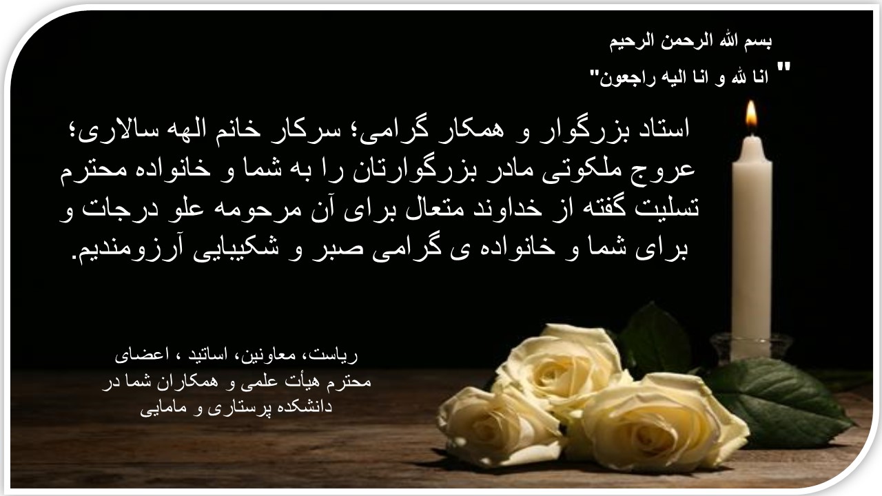 استاد بزرگوار و همکار گرامی؛ سرکار خانم الهه سالاری: پیام تسلیت