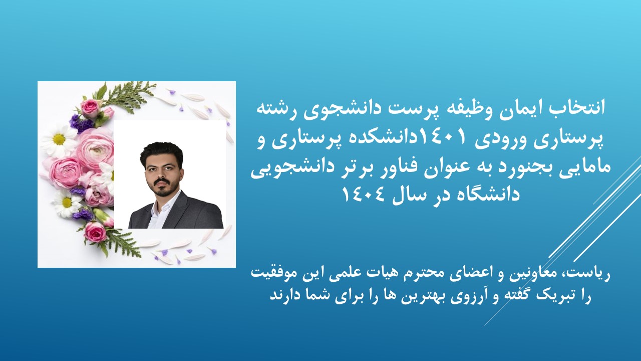 انتخاب ایمان وظیفه پرست به عنوان فناور برتر دانشجویی دانشگاه علوم پزشکی خراسان شمالی