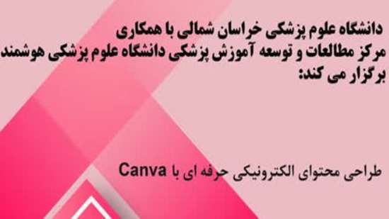 معاونت آموزشی دانشگاه علوم پزشکی خراسان شمالی با همکاری دانشگاه هوشمند برگزار می کند: کارگاه طراحی محتوای الکترونیکی حرفه ای با Canva ویژه اساتیدمحترم هیئت علمی ، دانشجویان ،کارمندان