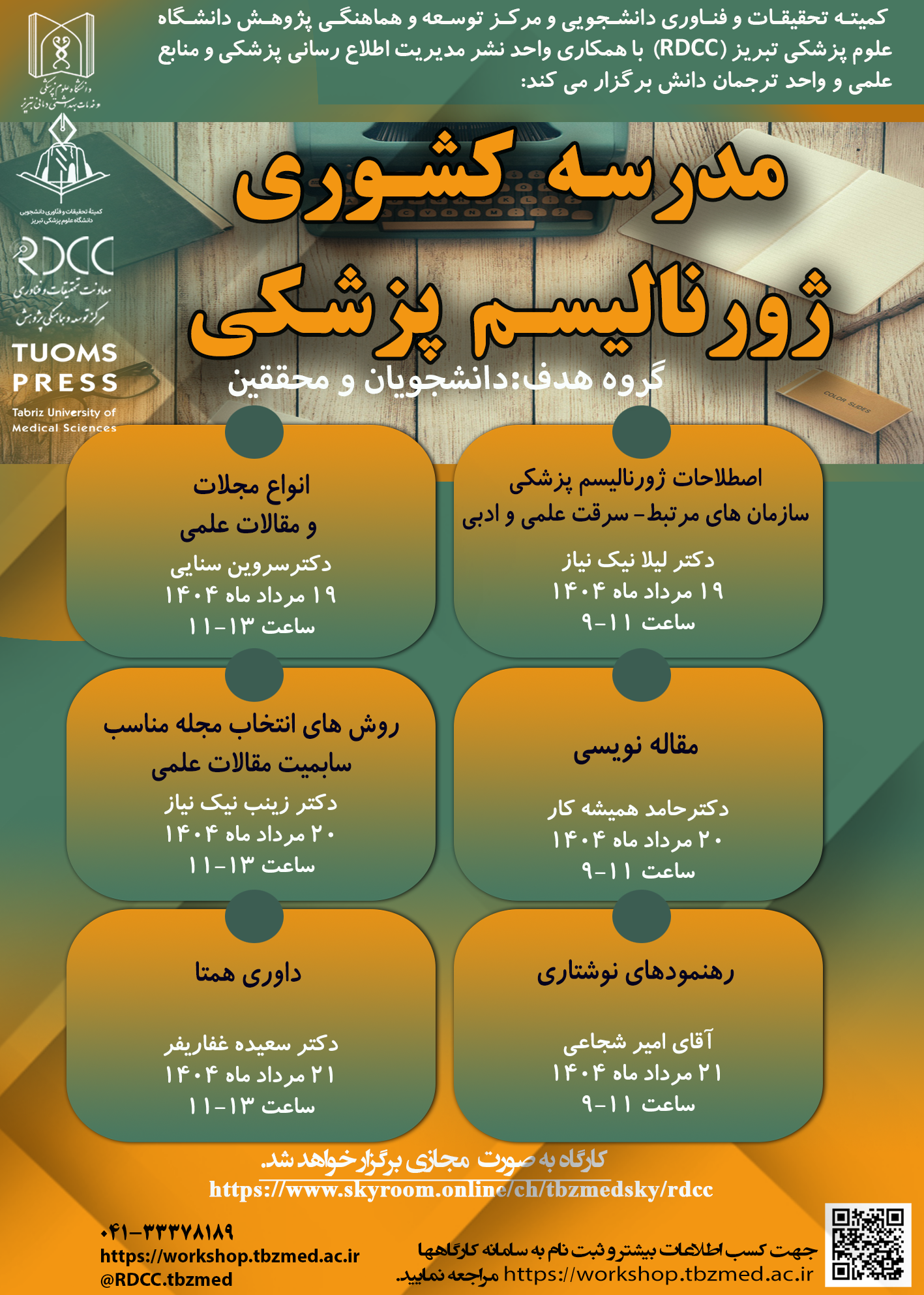 مدرسه ژورنالیسم پزشکی توسط دانشگاه علوم پزشکی تبریز ویژه دانشجویان و محققین برگزار می شود