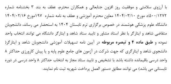 دانشگاه علوم پزشکی هوشمند شرایط ثبت نام ترم تابستان دانشجویان شاهد و ایثارگر را اعلام کرد