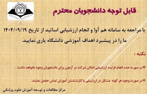 شروع ارزشیابی دانشجویان از اساتید در نیمسال اول تحصیلی 1404و 1405 از 19 آذر گروه خبری : اخبار ویژه,آخرین اخبار کد خبر : 59133 کپی لینک کلمات کلیدی ارزشیابی_دانشجویان_از_اساتیددانشکده_پرستاری_و_مامایی_بجنورد