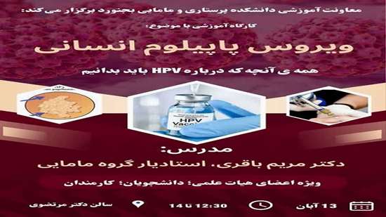 معاونت پژوهشی دانشکده پرستاری و مامایی کارگاه ویروس پاپیلوم انسانی را برگزار می کند