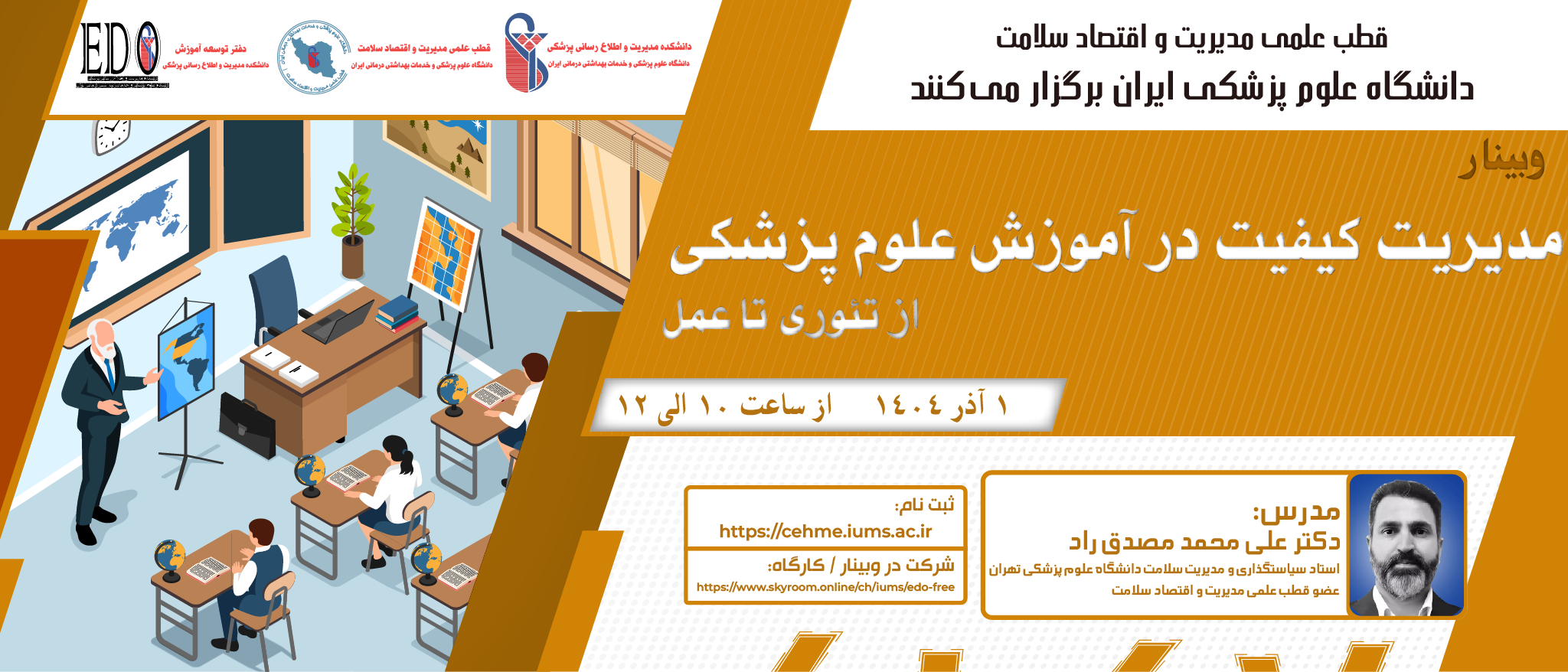 بینار آموزشی با عنوان مدیریت کیفیت در آموزش علوم پزشکی از تئوری تا عمل ویژه اعضای هیئت علمی کارکنان و دانشجویان
