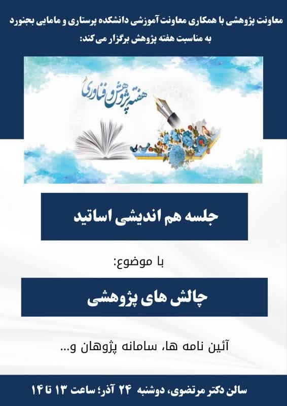معاون پژوهشی دانشکده پرستاری و مامایی بجنورد؛ به مناسبت هفته پژوهش اعلام کرد