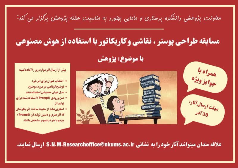 برگزاری مسابقه طراحی پوستر و کاریکاتور با موضوع پژوهش با هوش مصنوعی تا تریبون آزاد دانشجویی و هم اندیشی اساتید، ویژه دانشجویان و اساتید